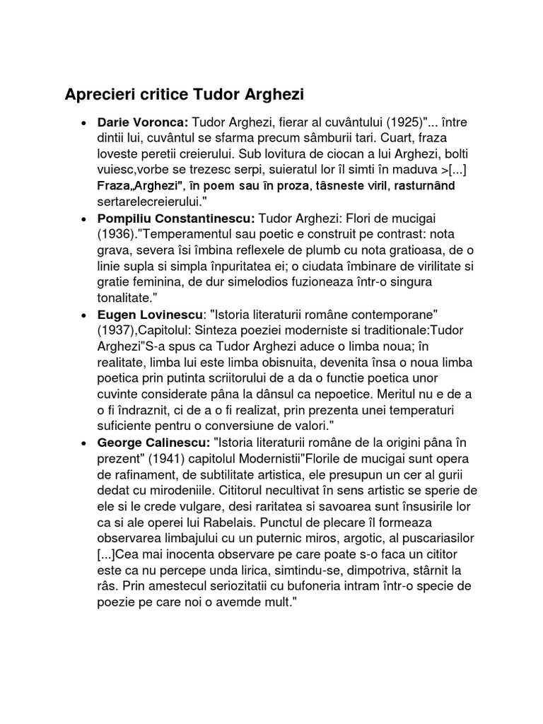 Repere Critice T Arghezi Pdf Document