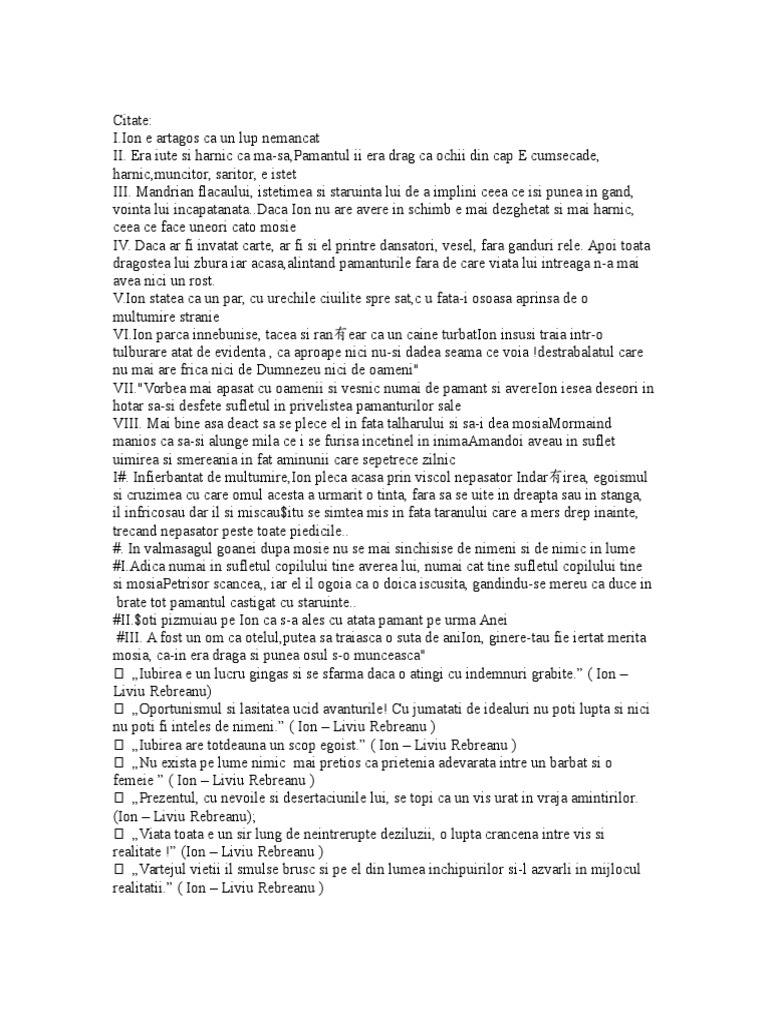 Am Nevoie De Cateva Citate Din Romanul Ion De Liviu Rebreanu Dar Sa Fie Mentionata Si Pagina De Unde Brainly Ro