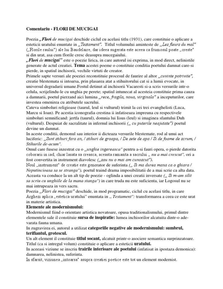 Flori De Mucigai Comentariu Literar