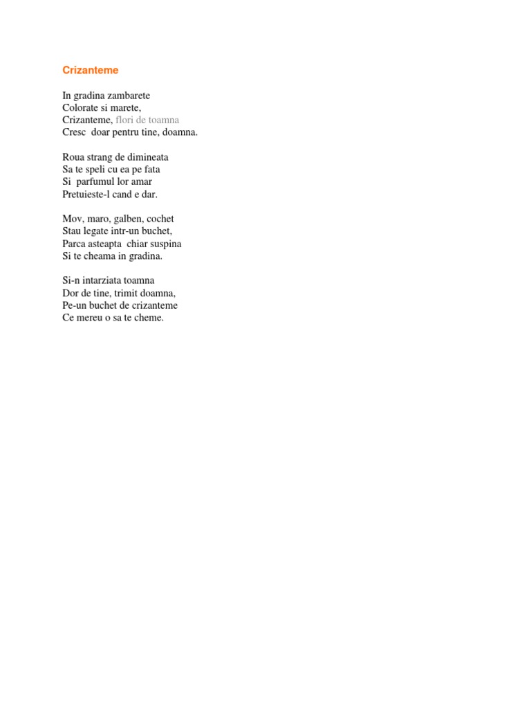 Crizanteme Flori De Dor Versuri