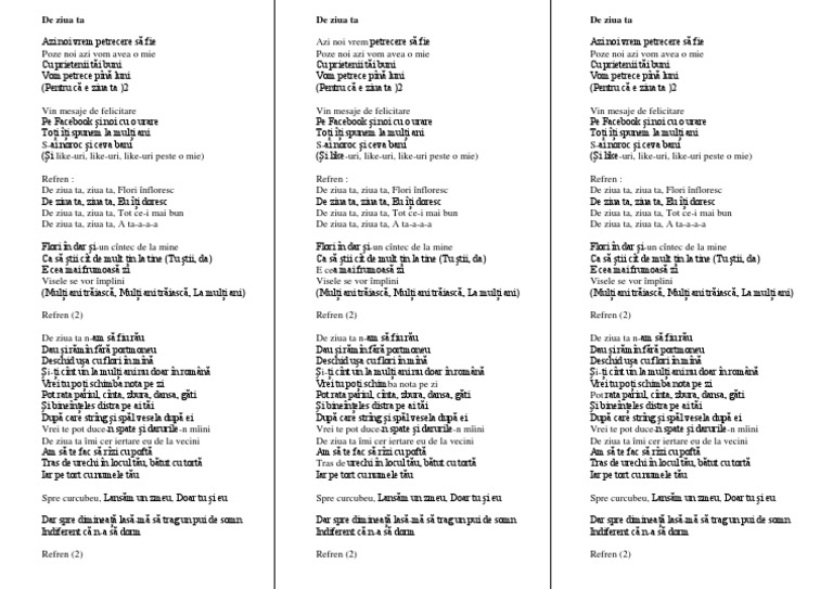 Bety De Ziua Ta Versuri